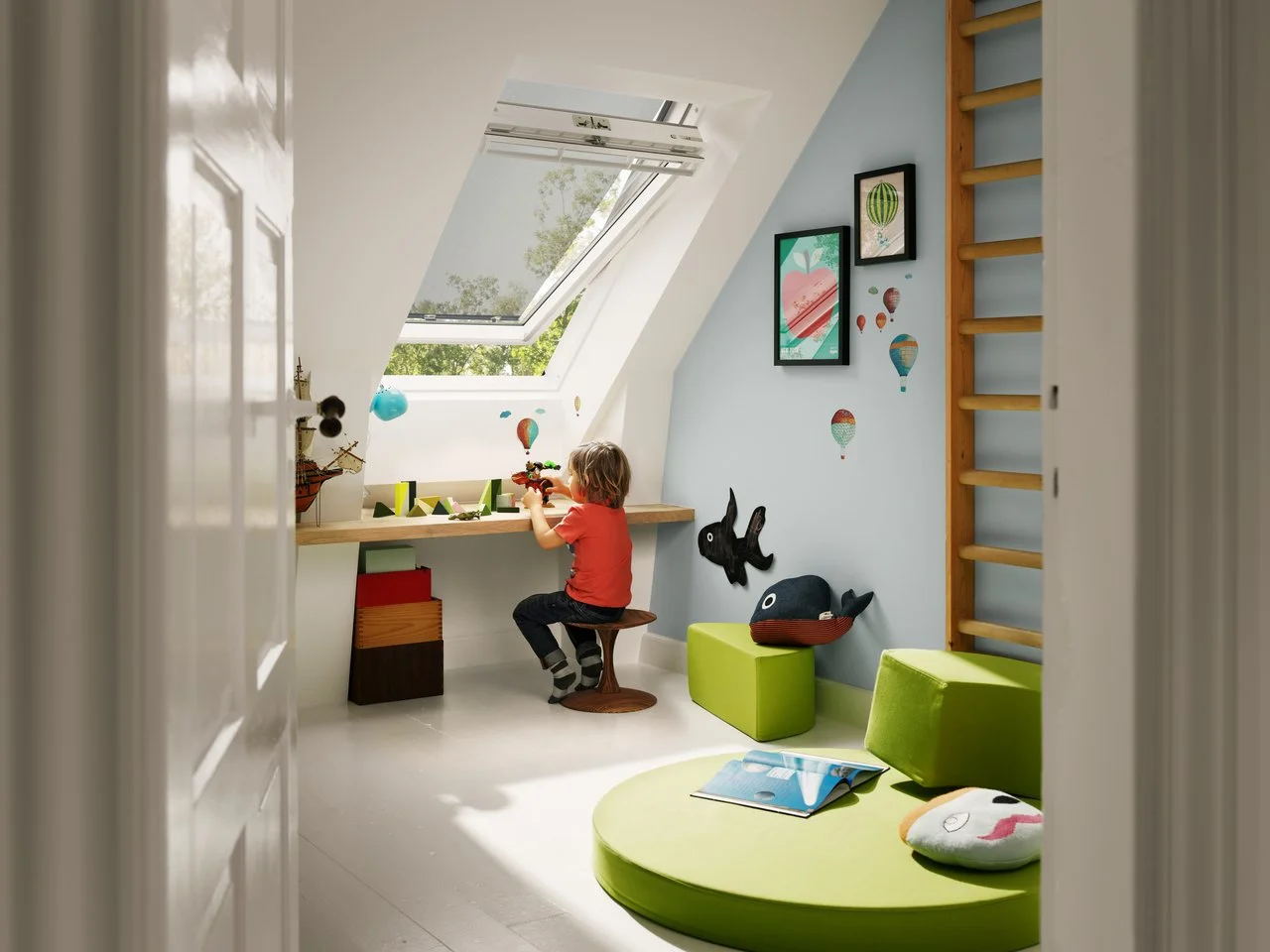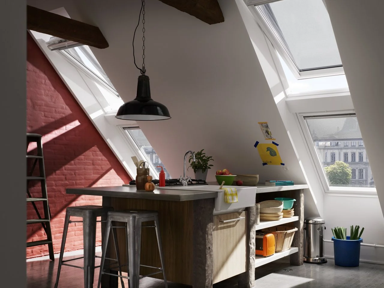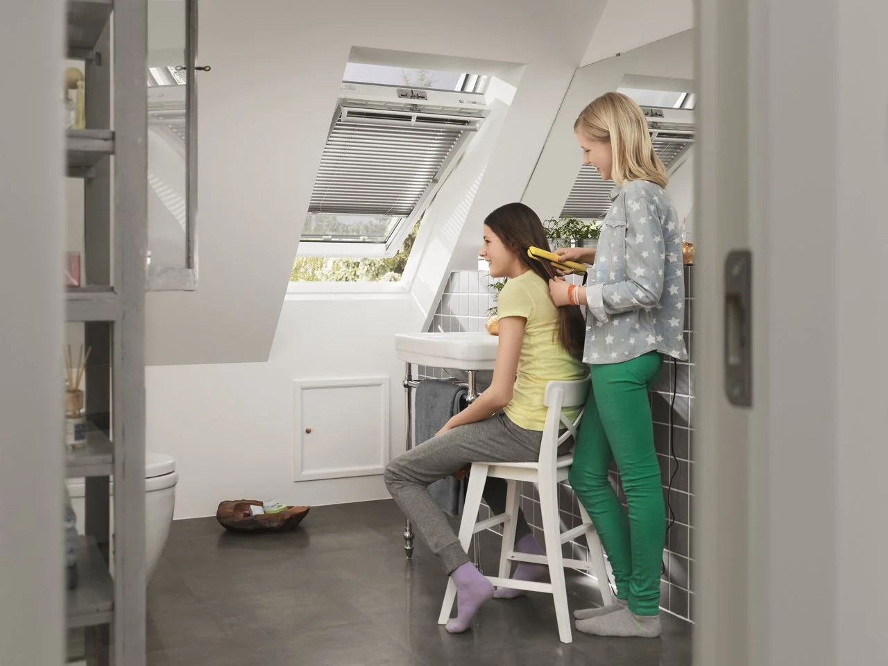 Le tende parasole esterne VELUX filtrano i raggi solari prima che colpiscano la vetrata della finestra, evitandone il surriscaldamento e riducendo il calore in ingresso. Creano un piacevole effetto ombreggiante senza compromettere la vista verso l'esterno.