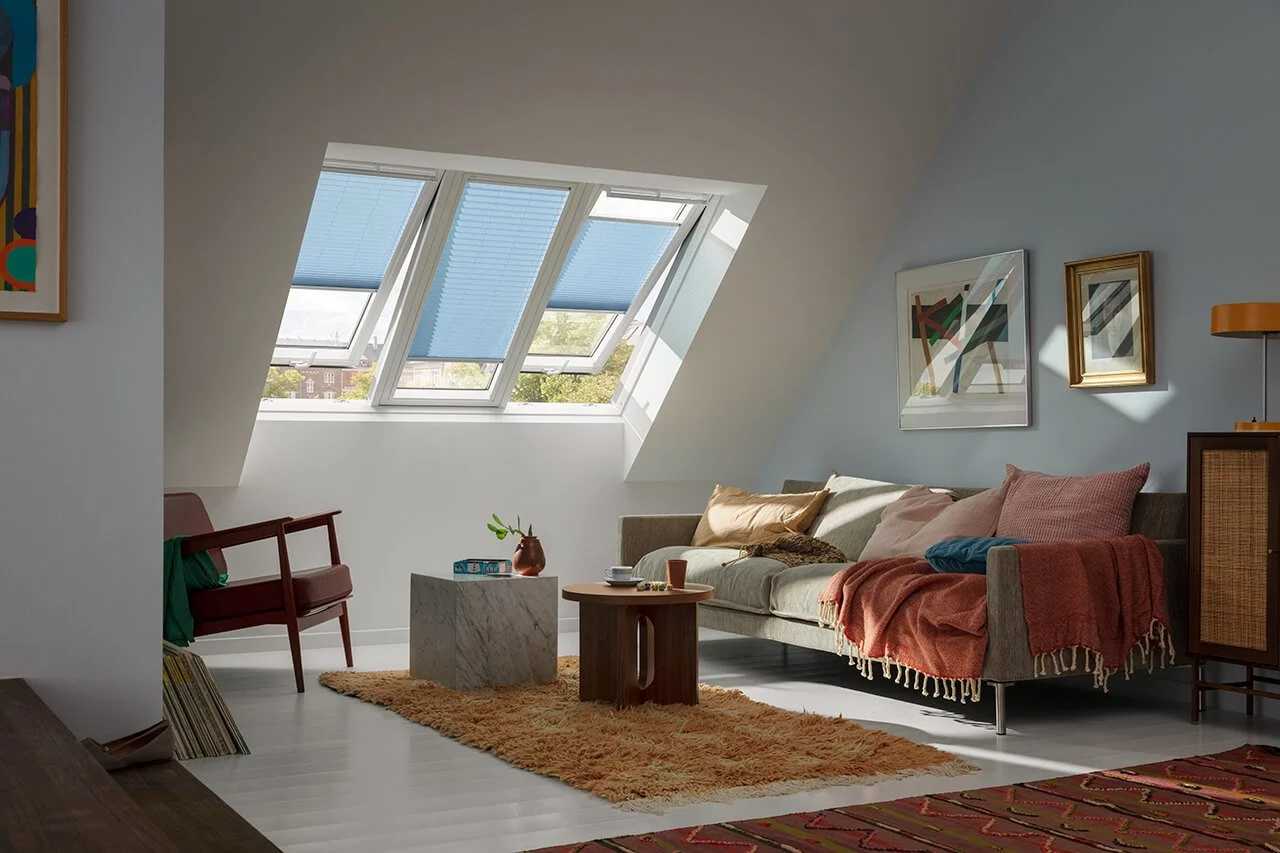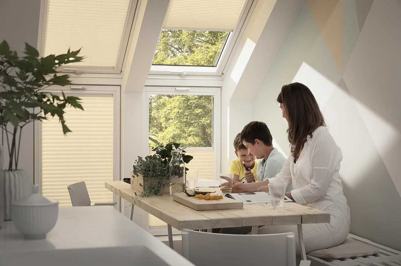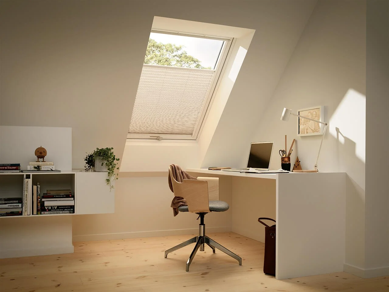 Le tende filtranti plissettate VELUX attenuano più o meno la luce, a seconda del colore scelto.